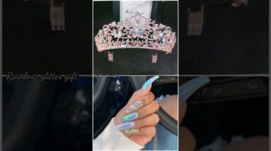 Lovely crown Vs ️Identical color nail artwork | Rainbow glitter present